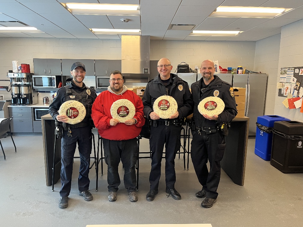 We collaborate with our local community members to deliver pizzas and monetary donations to support local first responders.